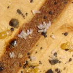 Newly hatched eggs are small, white, barrel-shaped and sticky. The eggs are coated with a sticky substance so that they will adhere to whatever they are laid on. Female bed bugs lay from one to twelve eggs per day. A female may lay an bed-bug-eggsaverage of 200 eggs in her lifetime, with the potential of up to 500 eggs. Eggs hatch in about ten days on average and nymphs can immediately begin to feed. They require a blood meal to molt and bed bugs reach maturity after five molts.